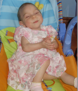 Nazywam się Julka Chojnacka. Urodziłam się 11 września 2008 roku. Mieszkam w Strzałkowie. Nie jestem jeszcze bardzo duża i dopiero poznaję świat, staram się uczyć codziennie nowych rzeczy, ale przeszkadza mi w tym choroba. Bardzo chciałabym siedzieć, raczkować i biegać tak jak inne dzieci. Wiem, że inne dzieci, co mają tyle samo miesięcy co ja już tak robią. Oczywiście podsłuchałam jak mama opowiada to tacie. Wiecie - dorośli nie wiedzą, że my dzieci dużo słyszymy i wszystko rozumiemy Biegać to chyba znaczy nie podpierać się rękami jak się przemieszczasz - ciekawe jak to jest???